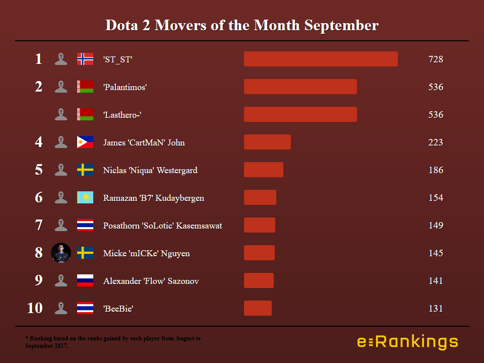 With more than 2,000 players in the Dota 2 World Ranking right now, it is hard to see which one made the biggest impact recently. That is why i created the category „Mover of the Month“ – and the award goes to [st_st] in September.