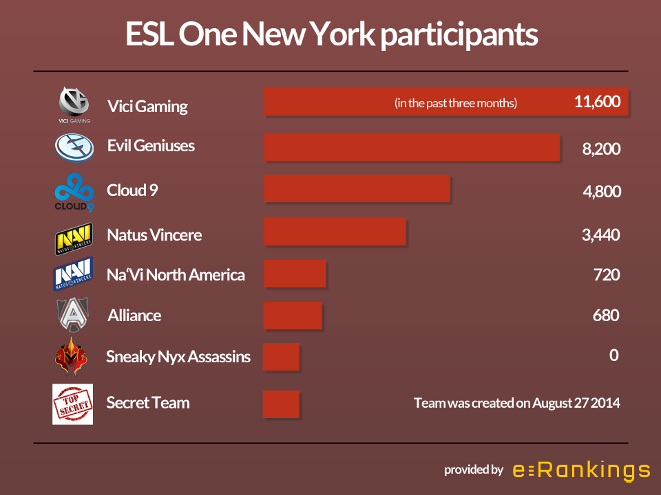 Good thing for Na’Vi that they have two team in the competition: [na`vi north america] was found by them picking up the [north american rejects] in June. The team instantly participated in The International 2014 (#15) and won the BountyHunter America Showdown twice in a row. [na`vi north america] qualified for ESL One New York flawlessly beating [root gaming] and [sneaky nyx assassins] in the American Qualifiers.