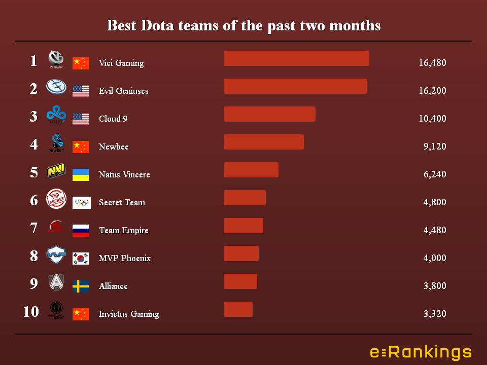 But the change turned out to be good: Since September [natus vincere] has gathered more than 6.000 points in the World Ranking. For a brief month they even reclaimed the top position in the ranking, however lost it in November to an even better team of [evil geniuses]. But in the past two months, [natus vincere] is back among the five best teams in the world.