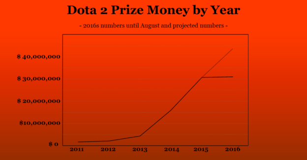 The amount of prize money in competitive Dota has almost doubled this year: Tournaments payed out roughly 31 million dollars in 2015. Of course Valve itself leads the way. Weiterlesen